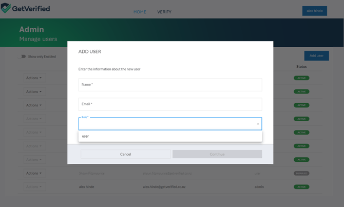 If a User doesn't recieve an email for set-up, please let us know at support@getverified.co.nz