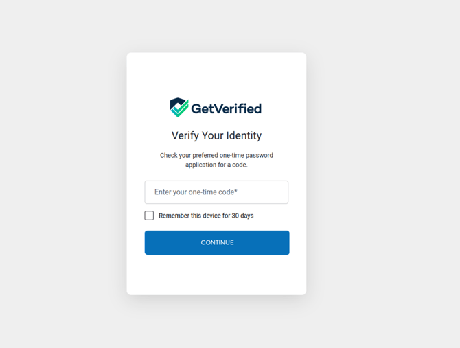 The screen could also look like this (below): Enter the one-time password code from the authenticator app and press 'Continue'.