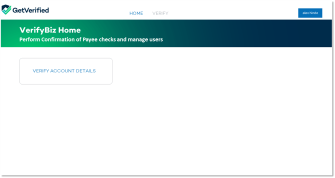 4. When you log-in, the service will take you to the VerifyBiz Landing page