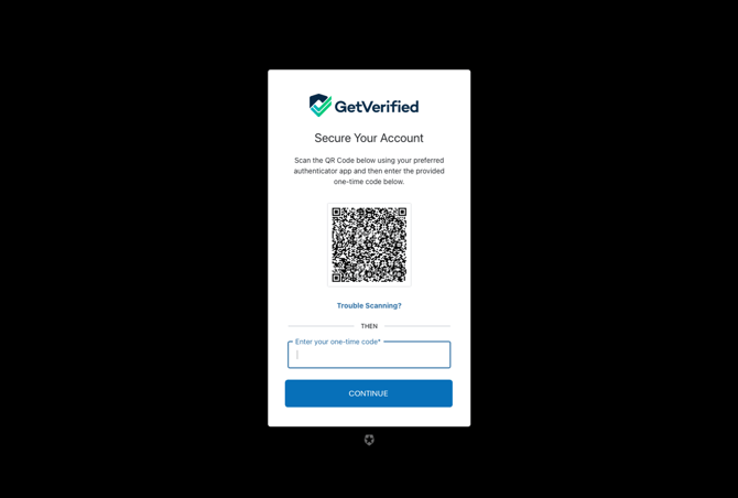 5. The Authenticator will provide a one-time password code. Put this code in the box provided below the QR code and click 'Continue'.