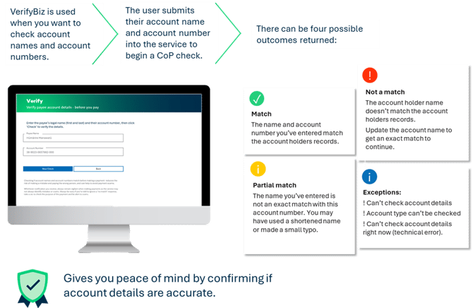 The service reduces the risk of making a mistake and paying the wrong person and can help to avoid payment scams.